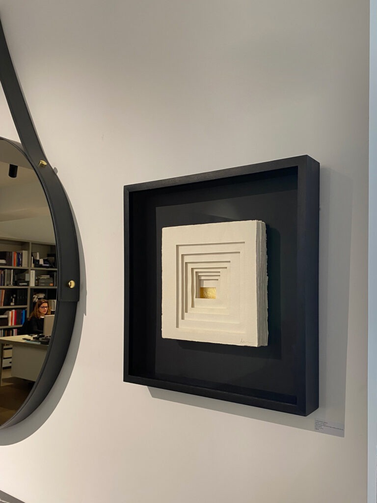 Obra sobre bastidor de madera enmarcada en urna de metacrilato.
