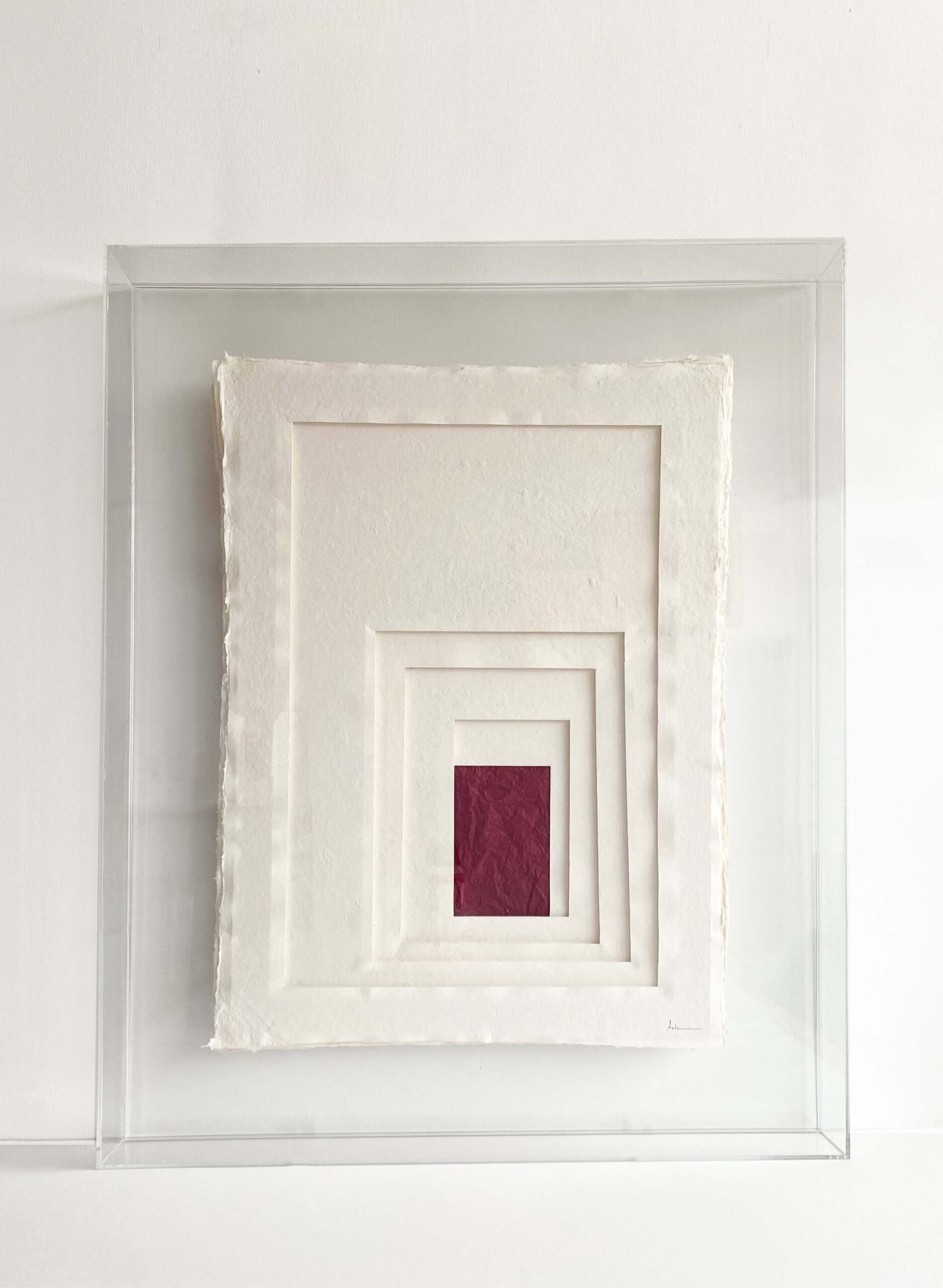 Obra de papel sobre urna de metacrilato.